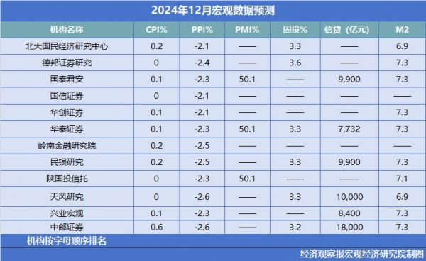 由《经济观察报》发起的“经济观察报月度观察”,每月发布一次。本次共有12家机构参与月度宏观数据预测。